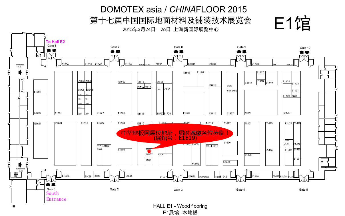E1館展位分布圖(中華地板網(wǎng)展位號(hào):E1館E19)