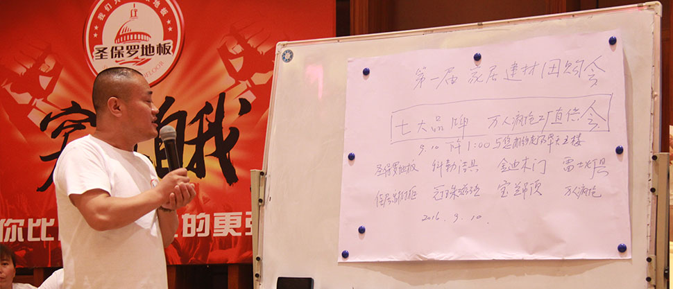 2016年7月5日,圣保羅地板2016’全國(guó)營(yíng)銷精英培訓(xùn)會(huì)于湖南療養(yǎng)之鄉(xiāng)——灰湯華天城溫泉度假酒店盛大開幕。來自全國(guó)各地的近兩百名營(yíng)銷精英匯聚一堂,開啟了為期三天的培訓(xùn)之旅。圣保羅地板安徽區(qū)總經(jīng)銷商汪總以多年的實(shí)戰(zhàn)進(jìn)行了地板營(yíng)銷、運(yùn)營(yíng)管理經(jīng)驗(yàn)的分享與傳授,并現(xiàn)場(chǎng)解疑答惑;來自湖南商學(xué)院的尹元元博士進(jìn)行了“互聯(lián)網(wǎng)+經(jīng)濟(jì)發(fā)展趨勢(shì)”分析及“品牌聯(lián)盟策劃”專題講座。中華地板網(wǎng)作為行業(yè)垂直門戶領(lǐng)跑者受邀參與了本次盛會(huì),對(duì)會(huì)議盛況進(jìn)行全程直播報(bào)道的同時(shí),對(duì)圣保羅地板優(yōu)秀經(jīng)銷商代表進(jìn)行了專訪。