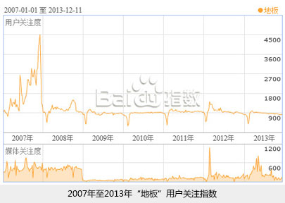 通過對(duì)2007年-2013年的"地板"用戶關(guān)注指數(shù)表統(tǒng)計(jì)可以得出,"地板"用戶關(guān)注指數(shù)在2007年到2013年期間,平均在1000次/天左右,而在2007年期間則迎來爆發(fā)性增長(zhǎng),由1000次/天最高增長(zhǎng)到4500次/天,指數(shù)增長(zhǎng)近4.5倍。而在經(jīng)歷2008...[詳細(xì)]