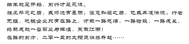 - 共甘苦、同患難,歷經(jīng)坎坷與挫折的地板企業(yè),抱團(tuán)相依,榮辱與共。一方面,“江湖同盟會(huì)”以新的姿態(tài)和力量借勢(shì)電商平臺(tái)屢獲戰(zhàn)績(jī),另一方面,今年雙十一期間地板行業(yè)也交出自己的電商成績(jī)單,重振行業(yè)發(fā)展的底氣與信心,大家也有理由相信2014年之后,地板行業(yè)的明天還將更美好!