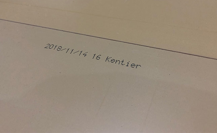 木板背面印有噴碼標(biāo)識(shí),清楚標(biāo)識(shí)了產(chǎn)品的品牌、批號(hào)、生產(chǎn)時(shí)間等相關(guān)信息。每一塊肯帝亞超級(jí)地板背面都帶有這樣的噴碼標(biāo)識(shí),以便質(zhì)量追溯。