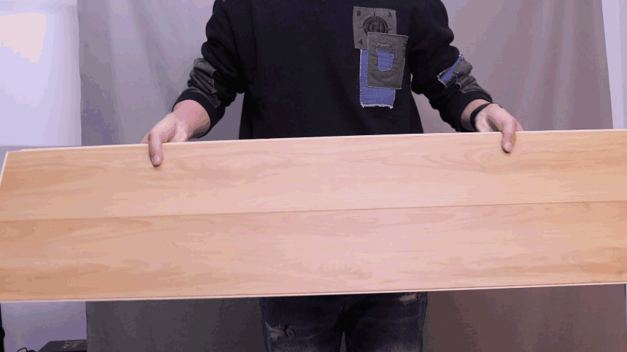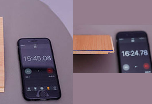 為了檢測(cè)鎖扣的牢固度,拿起拼接好的兩塊地板,離地60cm上下不停地?fù)u晃,地板完全沒有晃動(dòng)和松動(dòng)掉落的情況。