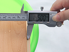 經(jīng)測(cè)量,泡水后地板寬度為145mm,其吸水厚度膨脹率可忽略不計(jì),可見這款地板防潮性能極佳。