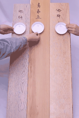 我們將兩塊它牌的地板與肯帝亞超級(jí)地板一端抬高至同一水平高度,灑上水,在三塊地板的最上端放置同樣的塑料片,它牌地板上的塑料片下滑速度更快。經(jīng)對(duì)比實(shí)驗(yàn),肯帝亞超級(jí)地板防滑性能非常獨(dú)特,遇水后不會(huì)打滑。