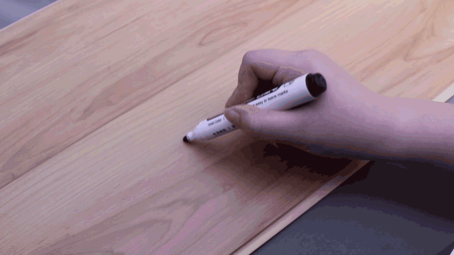 用水性筆在地板表面寫字,靜置5分鐘,用清潔海綿擦拭地板,表面字跡迅速被擦凈。
