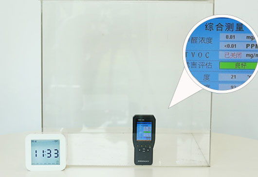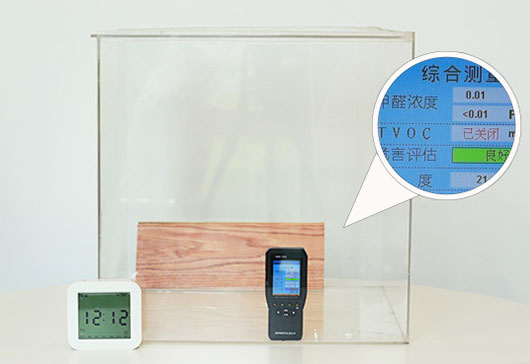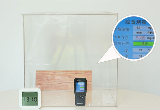 準(zhǔn)備尺寸為40*40*40(單位:cm)的密封亞克力盒子,用甲醛測(cè)試儀檢測(cè)箱內(nèi)甲醛含量,一小時(shí)內(nèi)甲醛含量數(shù)值維持在0.01mg/m3。