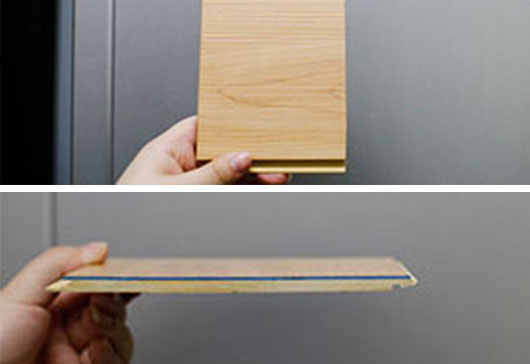 切割出0.65x10x15.5cm的肯帝亞超級(jí)地板作為樣本。
