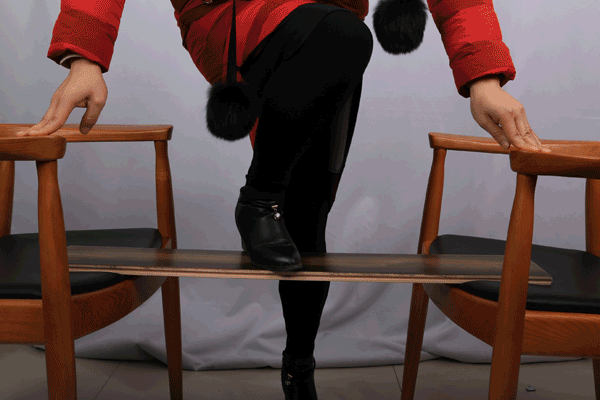 將梵·戴克地板——庭藝墨派架空,由現(xiàn)場(chǎng)的工作人員(60KG)雙腳踩踏在地板上,可以看到木地板沒有出現(xiàn)任何異常,從側(cè)面觀察可也沒有出現(xiàn)任何變形,所以此款木地板抗壓承重性能優(yōu)異,這一點(diǎn)毋庸置疑。